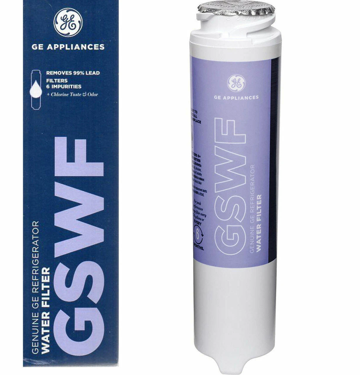The GE GSWF Refrigerator Water Filter fits most GE Top-Freezer, French-Door and Swing-Door Bottom Freezer refrigerators and reduces sediment, lead, cysts, chlorine taste, unpleasant odor and other contaminants in your water and ice. The GE GSWF filter is quick and easy to install. Compared to the cost of bottled water over a 6 month period, the GE GSWF water filter is very cost effective. The service capacity of the GE GSWF SmartWater filter is up to 750 gallons. GE recommends that you change your filter every 6 months.