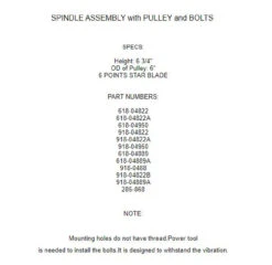 - 1x Spindle Assembly / w Pulley and Bolts
